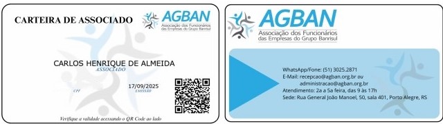Estão prontas as carteirinhas de associado(a) da AGBAN, que serão necessárias para a utilização dos nossos convênios.